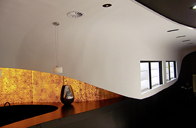 Aménagement d’un bureau d'évènement dans la capitale belge. L'élément principal est le comptoir qui rappelle une baleine. Le comptoir est revêtu de placage en bambou....