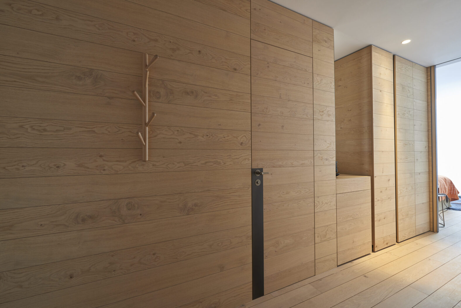Das Hotel und Restaurant „Golf Naxhelet“ besticht durch eine liebevoll gestaltete Innenausstattung: Eine Empfangstheke aus Echtholz setzt einen warmen Akzent, während Wandverkleidungen im Restaurant und im Sanitärbereich mit voll integrierten Türen für ein harmonisches Gesamtbild sorgen. Die komplette Einrichtung von Theke über Tische, Stühle und Leuchten wurde aufeinander abgestimmt und schafft eine einladende, stimmige Atmosphäre.